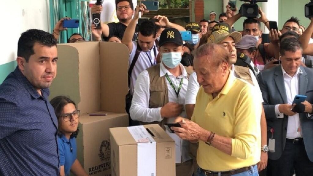 El ingeniero, Rodolfo Hernández, llegó hoy muy temprano al Colegio Santander de Bucaramanga acompañado de sus familia y el cuerpo de escoltas asignados por el Estado a cumplir con su derecho al voto. A las 8y 10 deposito su voto.