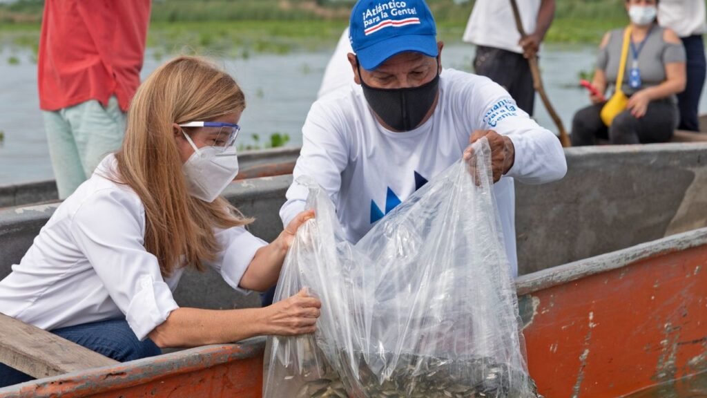 “El Plan Pescao es un proyecto productivo hermoso que arrancó en el 2020 por solicitud de los mismos pescadores, que desesperados por la ausencia de peces en nuestros cuerpos de agua nos pedían un repoblamiento de alevines. La buena noticia es que muy pronto arranca, por cuarto año consecutivo, el plan pescao versión 2023 y la meta es poblar con más de 12 millones de alevines los distintos cuerpos de agua del Atlántico, como el embalse del Guájaro, y las ciénagas de Luruaco, Malambo, San Juan de Tocagua, Totumo y El Sábalo. Con este ejercicio de repoblamiento, 5 mil pescadores artesanales de la zona podrán generar ingresos con la venta de pescado y, al mismo tiempo, podrán garantizar la seguridad alimentaria de sus familias”, resaltó la mandataria.