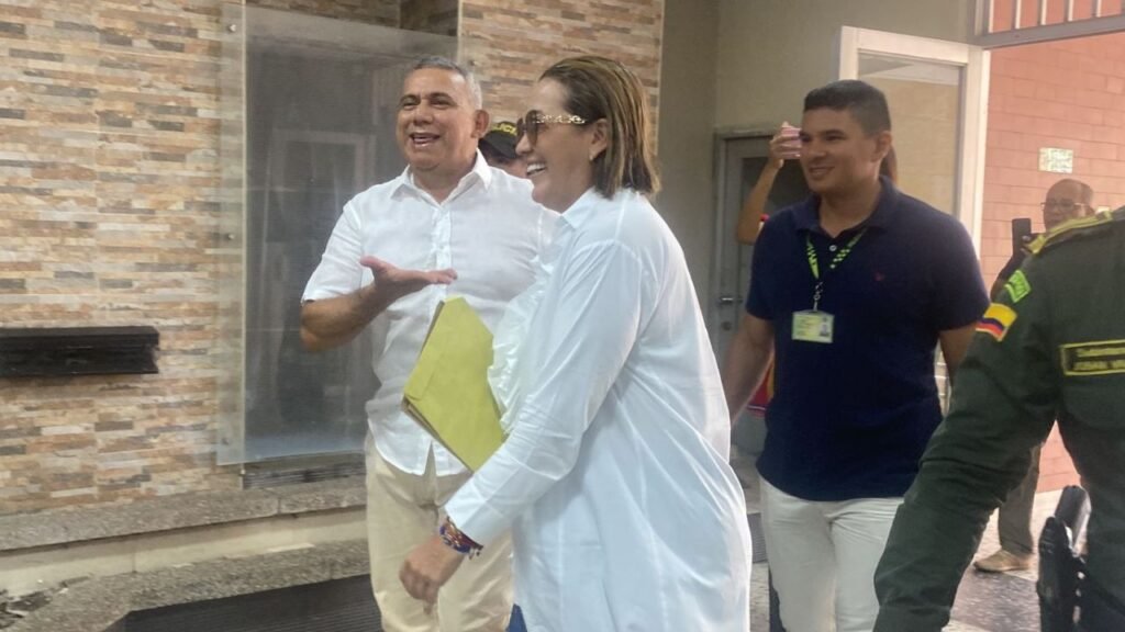 El aspirante a la Gobernación del Atlántico, Máximo Noriega Rodriguez, llegó acompañado de esposa Verónica de Noriega, para entrega su versión acerca del caso de Dayuris Vásquez y El diputado Nicolás Petro, en donde lo señala a él como el encargado de recoger los dineros que iban dirigido a la campaña de Petro Presidente.