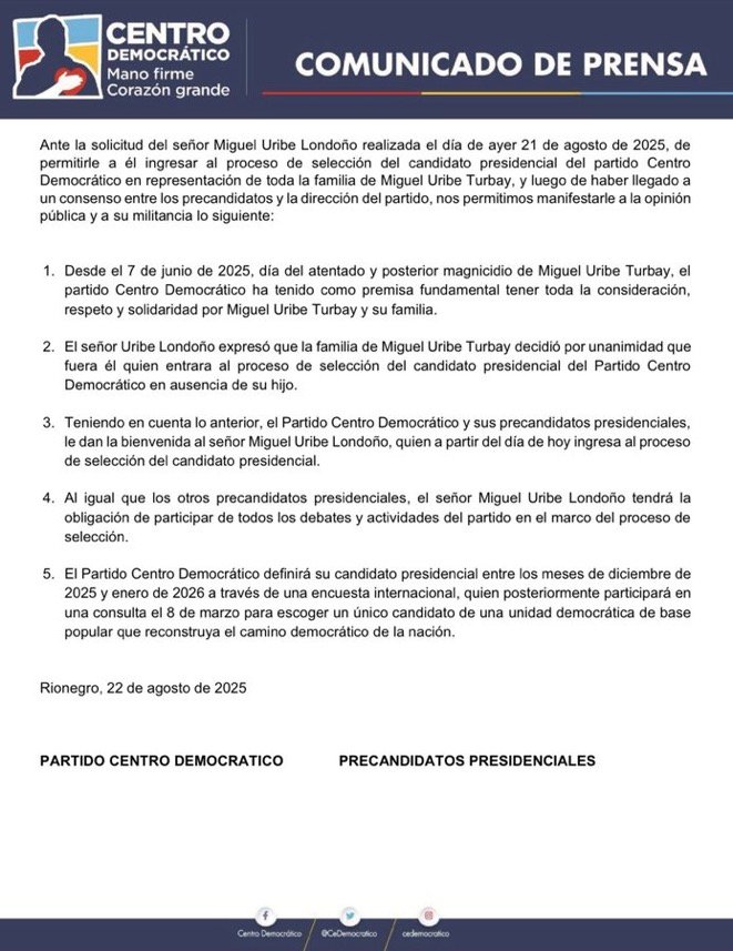 Miguel Uribe Londoño, tomará las banderas de su hijo como precandidato a la presidencia de la República – ALTERNATIVACARIBE