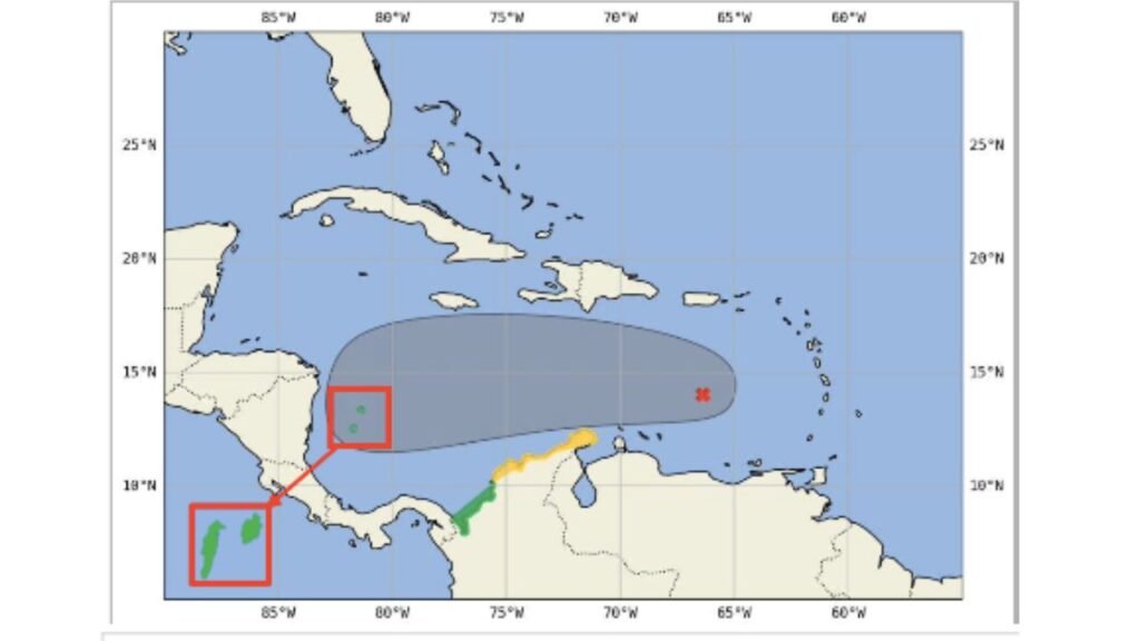Este sistema aún no representa una afectación directa sobre el territorio colombiano. Sin embargo, de acuerdo con las proyecciones de los diferentes modelos numéricos y del Centro Nacional de Huracanes de la NOAA (NHC), podría en los próximos días interactuar con otros sistemas meteorológicos propios de la época, favoreciendo la ocurrencia de lluvias de variada intensidad en amplios sectores de la región Caribe y de la zona marítima del mar Caribe colombiano, acompañadas de rachas de viento.